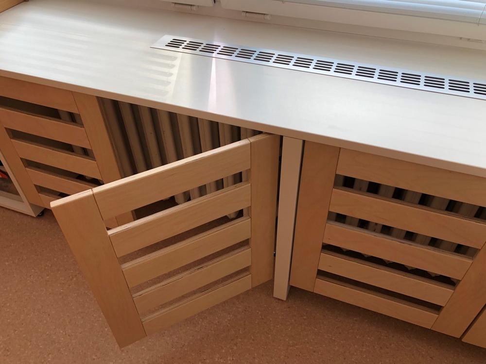 Společnost Dreamwood se specializuje na interiéry mateřských škol od roku 2008 a častým požadavkem zákazníků je právě komplexní řešení zakrytování radiátorů. V průběhu let jsme vyvinuli několik typů krytů. Vždy jsme usilovali a praktické a univerzální řešení avšak uzpůsobené na míru danému interiéru a požadavkům konkrétního zákazníka.V posledních letech jsou oblíbenými typy kryty tvořené bočnicemi a výklopem.