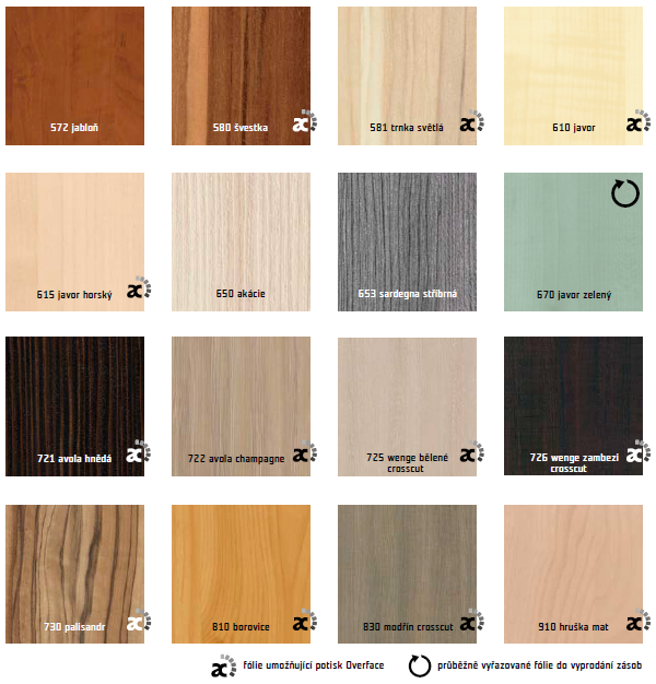 PŘEHLED FÓLIÍ - BĚŽNÉ FÓLIE