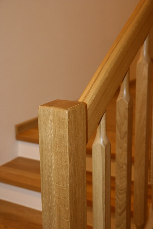 Masivní schodiště Ostrava - zhotovení schodišťových stupňů a zábradlí z dubu na míru v rodinném domu v Moravskoslezském kraji. Schodiště bylo dodáno včetně podesty.