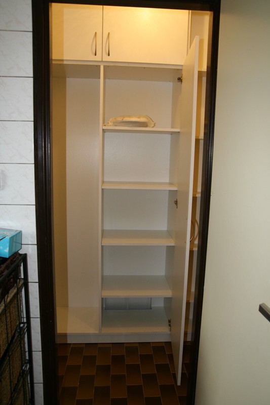 Vestavěná skříň Těrlicko - skříň slouží jako uložný prostor v technické části domu. Nábytek v provedení bílá je nadčasový a pěkný.